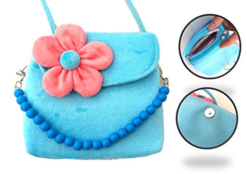 (K-JOY) 女の子 キッズ用 花柄 ハンドバッグ ショルダー バック 斜めがけ / 子供用 カバン 鞄 (花 水色)