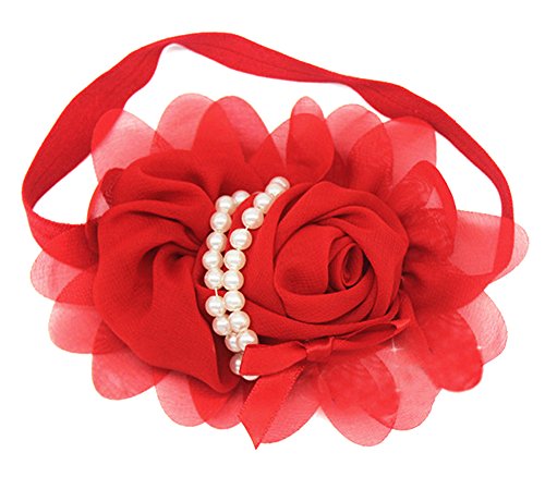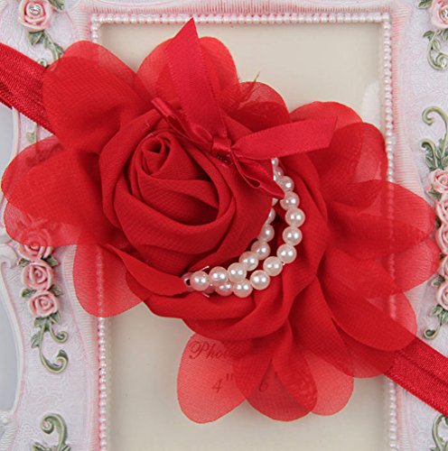 (シャイニング ガールズ)shining girls ベビー用ヘアバンド パール&バラ レースヘアアクセサリ 可愛い 記念写真用 (レッド)