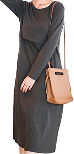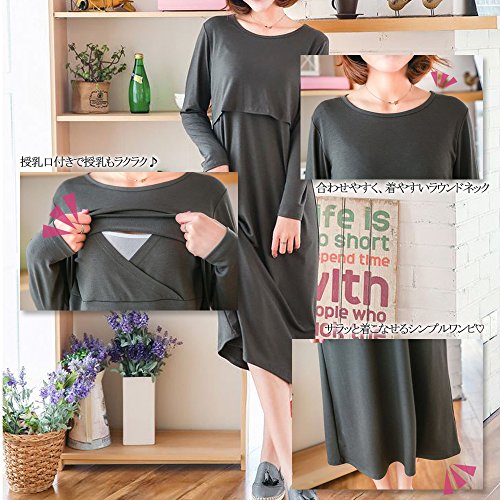 - マタニティー の授乳口付 長袖 ロング 丈 ワンピースです。柔らかい生地 で 肌さわりがよく、ゆったり 楽ちん に着ていただけます。ロング丈で 体型カバー 効果も◎
