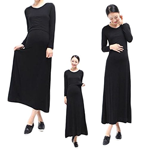 (ハナハナ) HANAHANA マタニティ 授乳服 ロング丈 ワンピース 体型カバー 長袖 大きいサイズ ゆったり 着心地 伸縮性 授乳 i050 (ブラック, XL)
