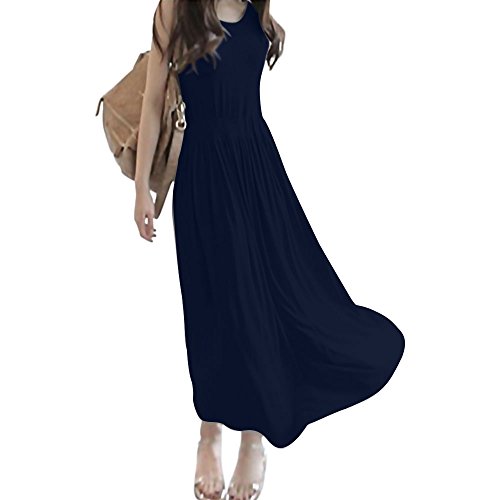 (ハナハナ) HANAHAN 綿 細見せ 体型カバー 柔らか ロング マキシワンピース 夏 マタニティ ゆったり 楽ちん レディース 海 i030 (ネイビー)
