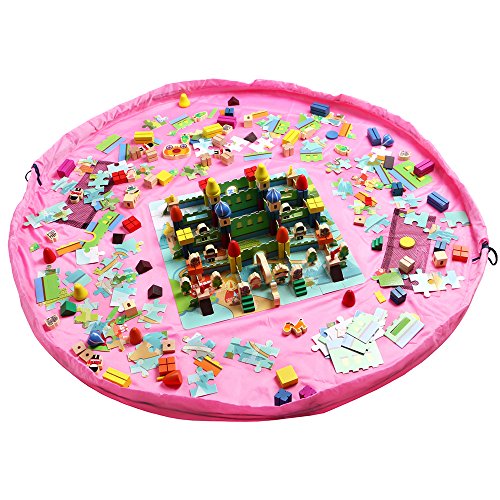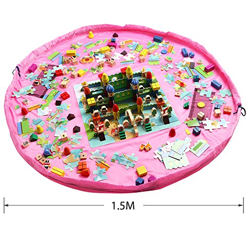 (ホームキューブ)Homecube 2in1 ストレージバッグ プレイマット 直径150cm 片付けらくらく ブロックポーチ 子供 おもちゃ 収納 おかたづけマット(ピンク)