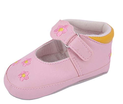 (ワボーズ) Waboats 赤ちゃん ベビー シューズ 可愛い お花刺繍 柔らかい靴底 ファーストシューズ マジックテープ 子供 靴 子供用歩行靴 出産お祝い ピンク 13