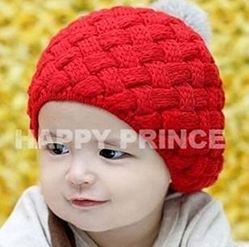 (ワボーズ) Waboatsベビー キッズ 子ども 赤ちゃんウサギの毛/アンゴラの帽子 ボーダー ボンボン 暖かい 全4色 レッド