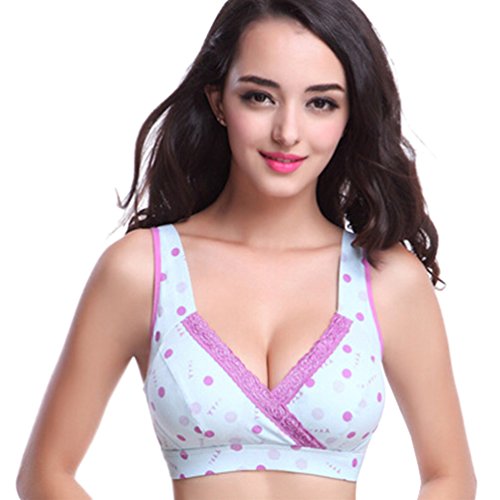 (ワボーズ) Waboatsカップ付き 全世界で大ヒッ マタニティ ブラジャー ヨガ エクササイズ ナイトブラ ストレッチレース付きやわらか授乳ブラジャ 授乳服 授乳用ブラジャー 妊婦 産後 矯正下着 ノンワイヤー ブルードット XL(85)=38