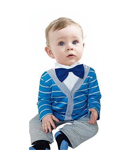 (ワボーズ)Waboats ベビー服 春秋 男の子 フォーマル 蝶ネクタイ付 長袖 ロンパース カバーオール ブルー 80