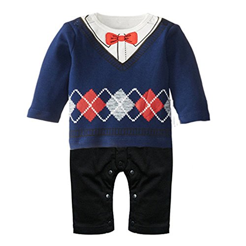 (ワボーズ) Waboatsベビー秋と春のかわいい立体的なカレッジ風蝶ネクタイ付きロンパース カバーオール ベビーロンパース ベビーカバーオール 2点セット ブルー 80