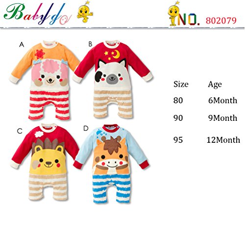 (ワボーズ) Waboatsベビー春と秋のかわいいアニマルプリントのデザイン長袖チュールロンパース カバーオール ベビーロンパース ベビーカバーオール A 80