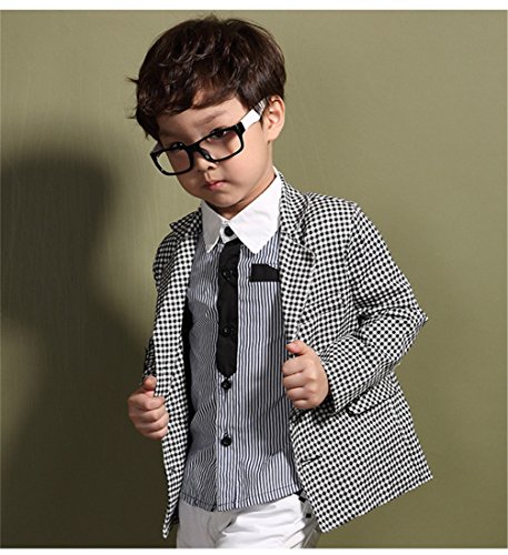 (ワボーズ) Waboats秋冬ファッション韓国ファッション男の子チェック柄の背広上下スーツ ボーイ立体的な紳士服 チェック 140
