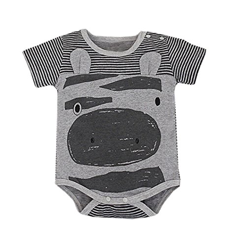 (ワボーズ) Waboats ベビー夏の可愛いカバ 半袖ロンパース 綿 花付き帽子 キッズ 綿 ベビーロンパース 半袖 カジュアル ベビーカバーオール 6月-2歳6月 カバ 95