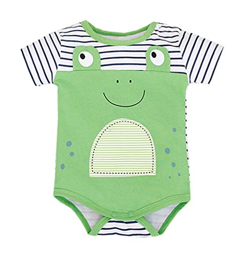 (ワボーズ) Waboats ベビー夏の可愛いカエル 半袖ロンパース ストライプ キッズ 綿 ベビーロンパース 半袖 カジュアル ベビーカバーオール 6月-2歳6月 95