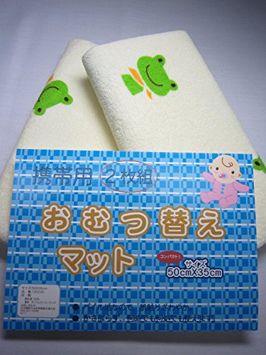 お出掛け用サイズ おねしょ・防水シーツ 2枚組 【50x35cm 】カエル柄