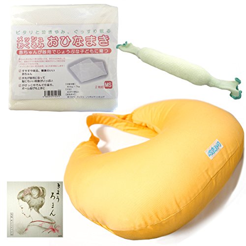 授乳時はもちろん、赤ちゃんの簡易ベッドにもなる「授乳クッション」と、赤ちゃんをまるまる姿勢でくるめるメッシュ布「おひなまき」、ベビー用首まくらの「マイピーロネオ(カバー付)」の3点きょうろまんセットです。