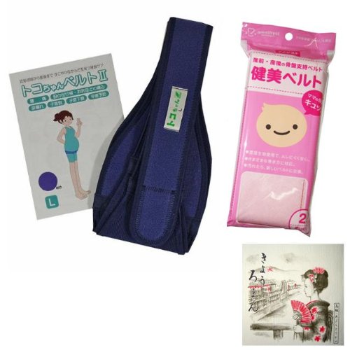 骨盤の後ろ側、お尻や尾骨が痛む場合に効果的なトコちゃんベルトII・Lサイズと、いろいろな巻き方が出来る健美ベルトのダブル巻きセット