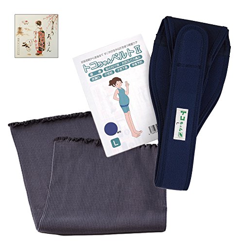 【きょうろまん付】トコちゃんベルトII(L:紺色)+厚手腹巻カラー(M丈60cm:グレー)【カラポカセット】