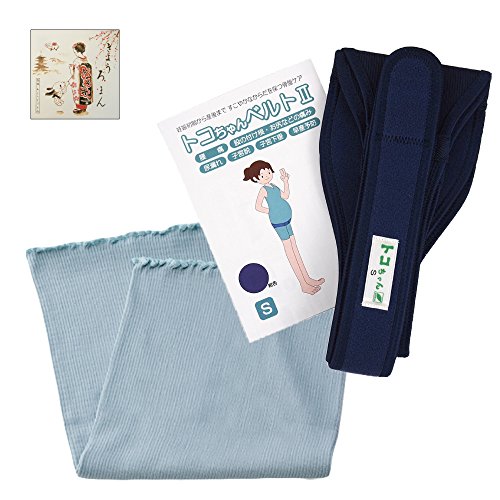 【きょうろまん付】トコちゃんベルトII(S:紺色)+厚手腹巻カラー(M丈60cm:サックス)【カラポカセット】