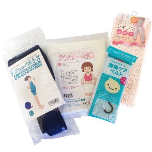骨盤の後ろ側、お尻や尾骨が痛む場合に効果的なトコちゃんベルトIIにアンダー腹巻(L:丈40cm/横幅フリーサイズ)と直後ケアベルトと入院時や分娩時にも着用出来るレギンスのご出産セット。 アンダー腹巻(L)の長さは40cm、横幅はフリーサイズなので体形の変化に対応します。2枚入でお洗濯も安心です。腹巻はトコちゃんベルト着用時の必須アイテムです。トコちゃんベルトは腹巻の上に着用下さい。