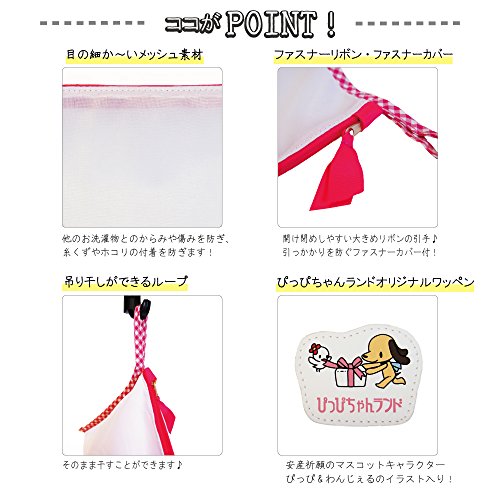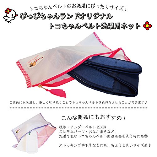 - 【洗濯用ネット】トコちゃんベルトにぴったりのサイズ!ぴっぴちゃんランドオリジナルの洗濯ネット♪ 目の細かいメッシュ素材なので、洗濯物のどうしの絡み・傷み・糸くずやホコリ等の付着を防ぎます! 吊り干しができるループ付!ぴっぴとわんじぇるのワッペンがついています♪ カラー:ピンク サイズ:17×36cm