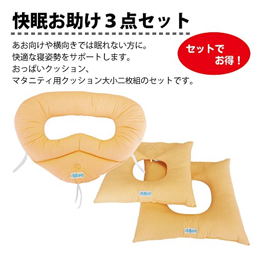 うつ伏せ寝でないと寝られない人や、大きなお腹のため横向きでも寝苦しい人は快眠お助けセットで、うつ伏せか、横向きとうつ伏せの中間の姿勢(シムス位)で寝ましょう。とても幸福感が味わえます。 おっぱいクッション・マタニティ用クッションの3点セット価格でお買い得です。