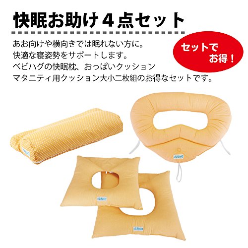 うつ伏せ寝でないと寝られない人や、大きなお腹のため横向きでも寝苦しい人は快眠お助けセットで、うつ伏せか、横向きとうつ伏せの中間の姿勢(シムス位)で寝ましょう。とても幸福感が味わえます。 おっぱいクッション・マタニティ用クッション・快眠枕の4点セット価格でお買い得です。