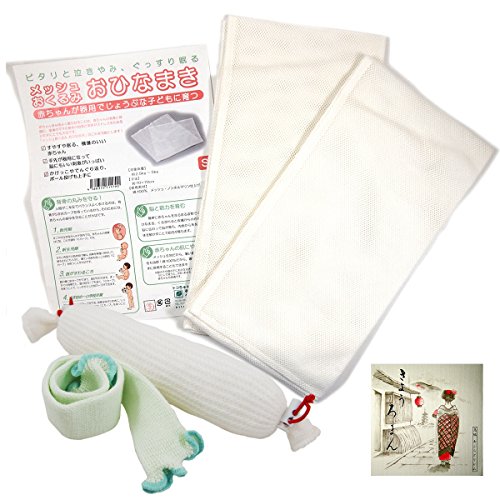 赤ちゃんの安眠のためのメッシュおくるみ「おひなまき」とベビー用首まくら「マイピーロネオ(カバー付)」と、きょうろまん高級あぶらとり紙のセットです。