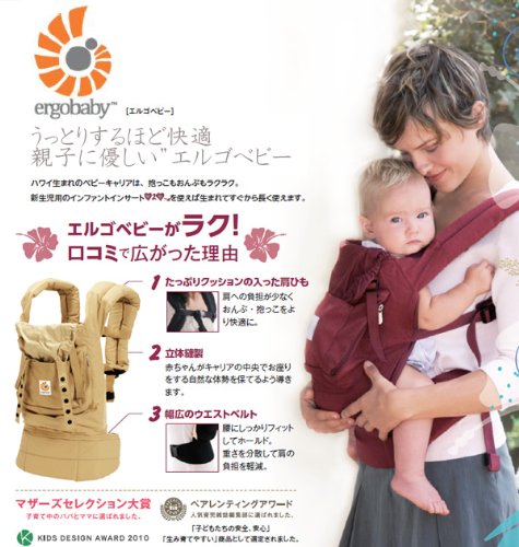 「エルゴベビー・ベビーキャリア」 は抱っこやおんぶで赤ちゃんを身につけ る(Wearing)ように、 いつも一緒にいられます。このスタイルが育児をもっと楽しくし、赤ちゃんの心を安定させ、家族の健やかな成長へとつながります。エルゴノミックポジションとは、赤ちゃんは自然に開脚したお座り姿勢でベビーキャリアの中ではいつでも快適!そしてパパとママにも腰と肩に重さをバランス分散。負担が少ないからたくさん抱っこしてあげられます。