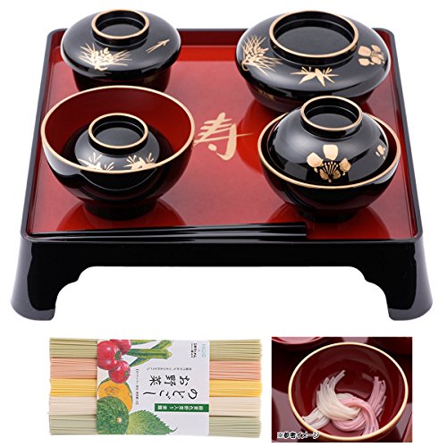 - 膳:25.5x25.5x高さ5.8 お箸:18 飯椀:φ10x高さ6 汁椀::φ9x高さ8つぼ椀:φ8.5x高さ7 平椀:φ10x高さ6