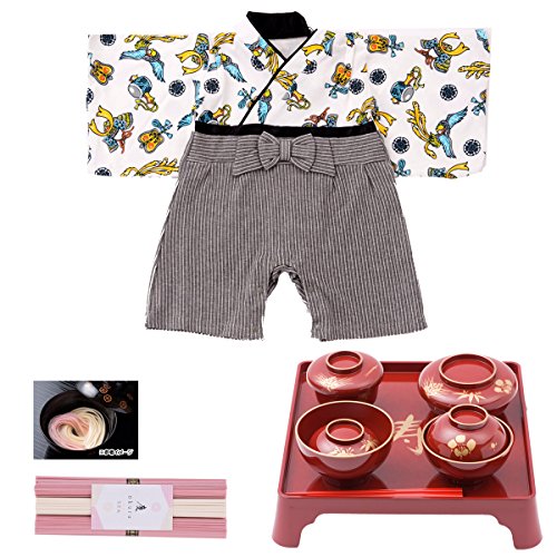 お食い初め 袴カバーオール ロンパース 男の子 兜 70~80cm セット
