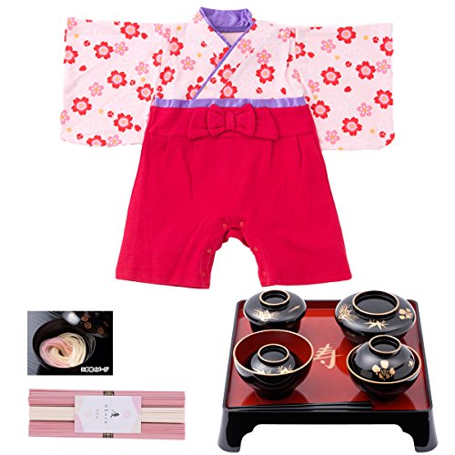 お食い初め 袴カバーオール ロンパース 女の子 巫女レッド 50~60cm セット