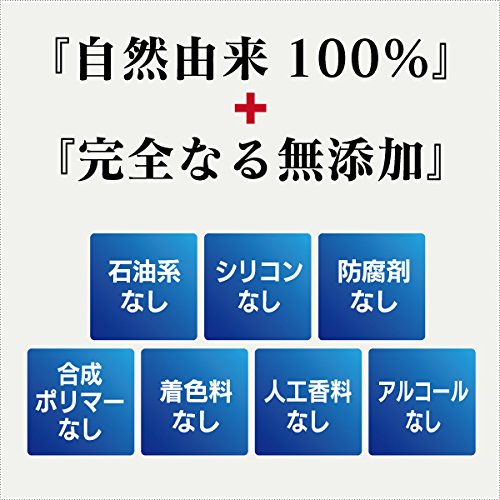 - 化学合成添加物:なし。※石油系合成界面活性剤・石油由来原料・シリコン・ポリマー不使用。化学合成の防腐剤・酸化防止剤・色素・人工香料一切無添加。