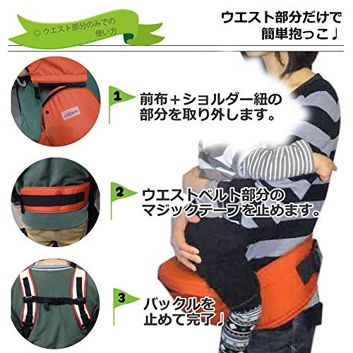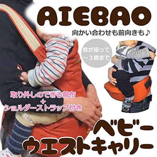 AIEBAO ベビー用ウエストキャリー 取り外しのできる前布+ショルダーストラップ付き 向かい合わせも前向きも(首が座ってから~3歳まで)(01ブラック)