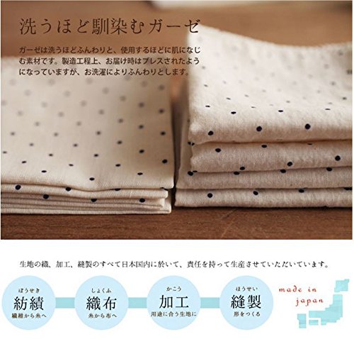 - 素材:綿100%(98本ガーゼ、2枚合わせ表ドットプリント)・オフホワイト(過酸化水素漂白)・生成り(無漂白)サイズ:35×70cm