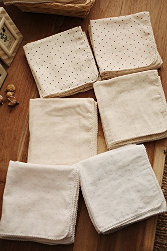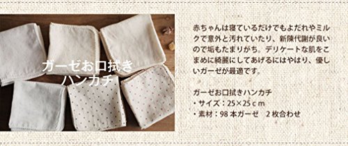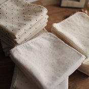 - 素材:綿100%(98本ガーゼ、2枚合わせ表ドットプリント)・オフホワイト(過酸化水素漂白)・生成り(無漂白)サイズ:横25cm×縦25cm