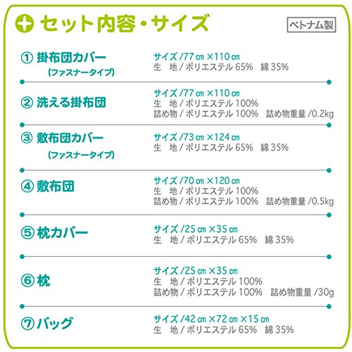 - カバーは、保育園での指定が多いファスナータイプ。お布団へのセットも簡単です。