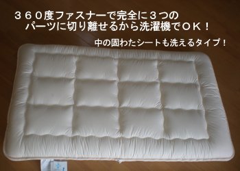 - 敷き布団も360度ファスナーにより完全に3つのパーツに切り離れますので、洗濯機で洗えます。