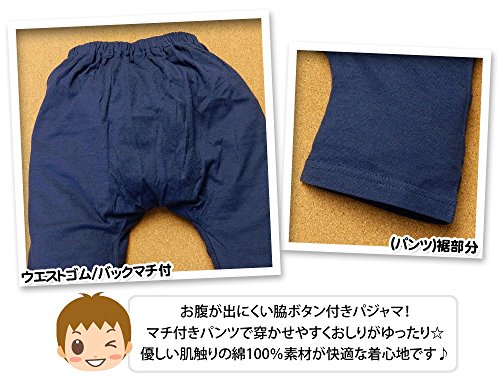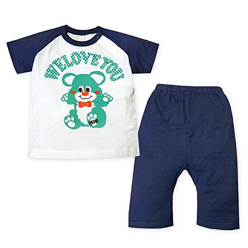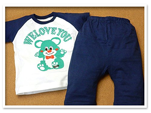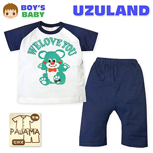 (ネイビー/90cm)ベビー服 男の子 パジャマ 半袖 UZULAND ウズランド 上下組 7分丈パンツ 脇ボタン付 後ろマチ 綿100% クマ ロゴプリント 男児 ベビー