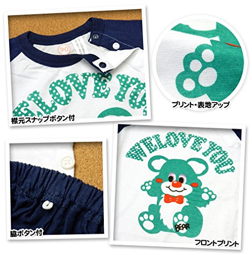 - ・ロゴプリント ・くまプリント ・脇ボタン付き ・襟元スナップボタン付き ・パンツ後ろマチ付き
