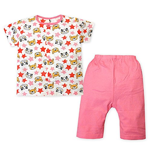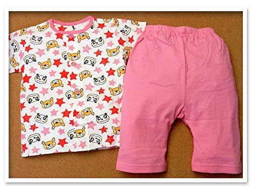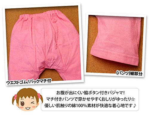 (ピンク/95cm)ベビー服 女の子 パジャマ 半袖 UZULAND ウズランド 上下組 7分丈パンツ 脇ボタン付 後ろマチ 綿100% 星 アニマルプリント 女児 ベビー