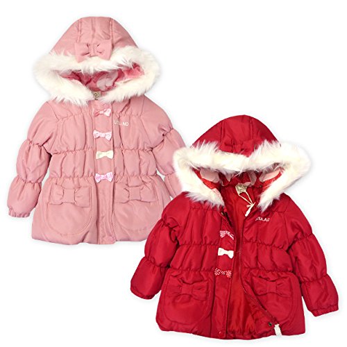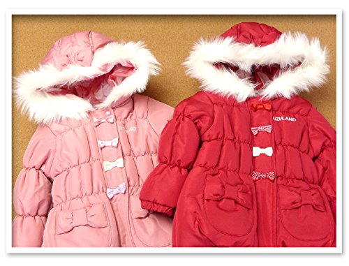 ベビー服 女の子 アウター フルジップ ジャケット撥水加工 ファー付フード リボン 女児 ベビー (1.ピンク/80cm)