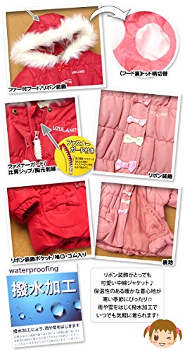 - ・UZULAND・中綿ジャケット・フルジップ・撥水加工・ファスナーガード付き・リボン装飾・胸元ロゴ刺繍・ファー付きフード