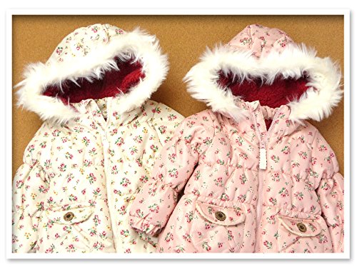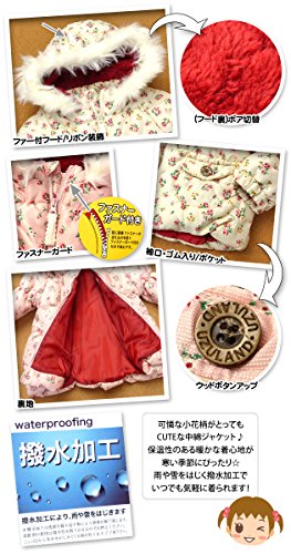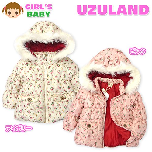 ベビー服 女の子 アウター フルジップ ジャケット 撥水加工 ファー付フード 小花柄 女児 ベビー (1.アイボリー/90cm)