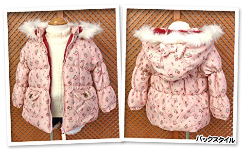 - ・UZULAND・中綿ジャケット・フルジップ・撥水加工・ファスナーガード付き・小花柄・リボン装飾・ファー付きフード