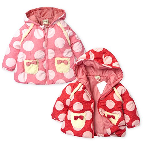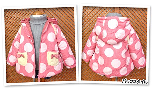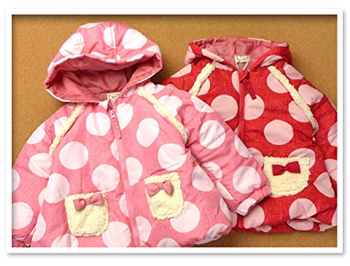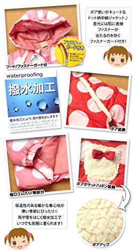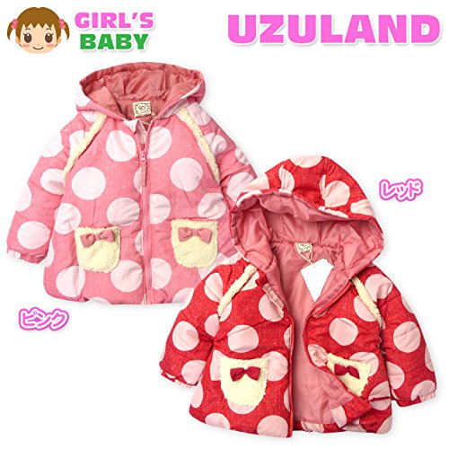 ベビー服 女の子 ジップ ジャケット UZULAND 中綿 撥水加工 ドット柄 ボア リボン 女児 ベビー (1.ピンク/90cm)