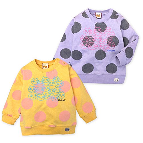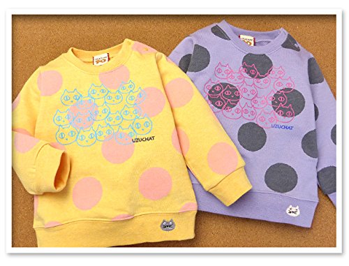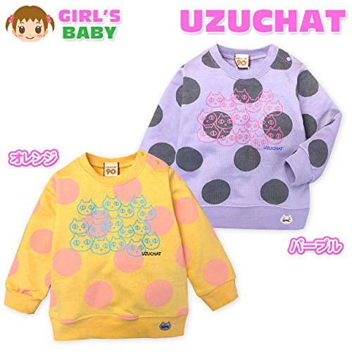 ベビー服 女の子 トレーナー UZUCHAT 長袖 裏毛 ドット柄 ネコプリント 刺繍 (1.オレンジ/95cm)