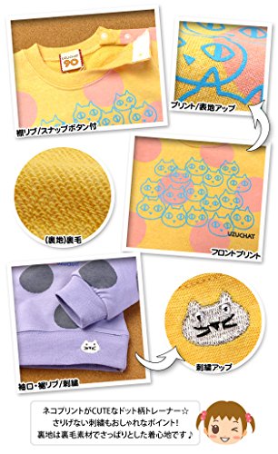 - ・UZUCHAT・裏毛トレーナー・ドット柄・ねこプリント・刺繍