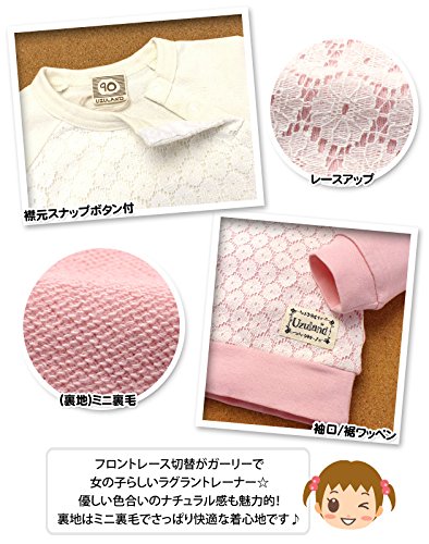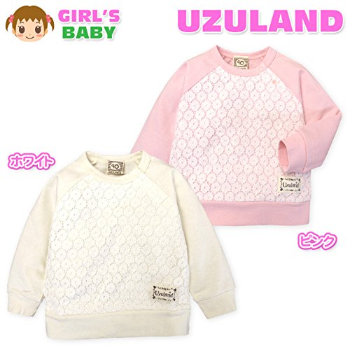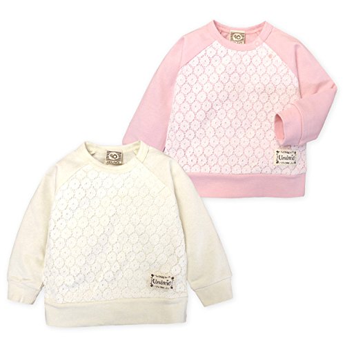 ベビー服 女の子 トレーナー UZULAND 長袖 レース スナップボタン付 ベビー (2.ピンク/90cm)
