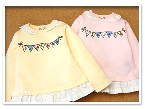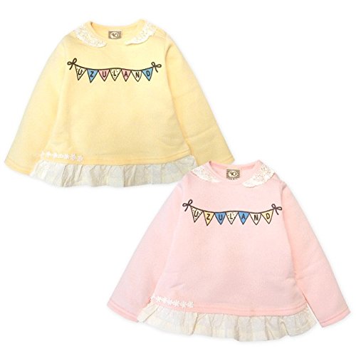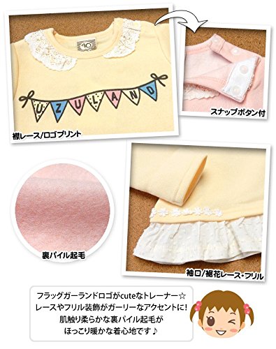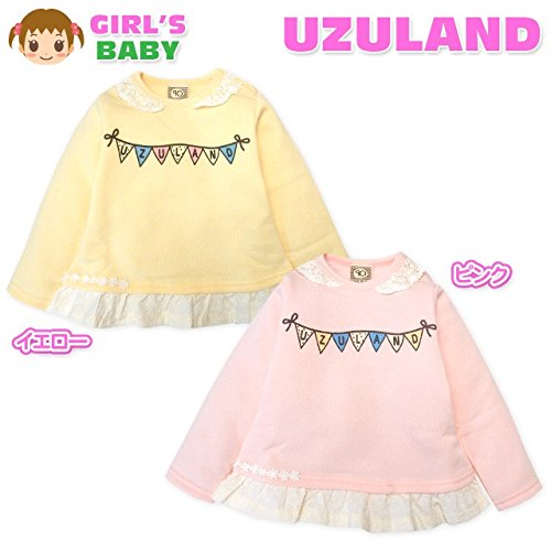 (イエロー/90cm)ベビー服 女の子 トレーナー 長袖 UZULAND 裏パイル起毛 レース フリル フラッグプリント スナップボタン 女児 ベビー