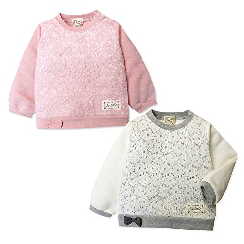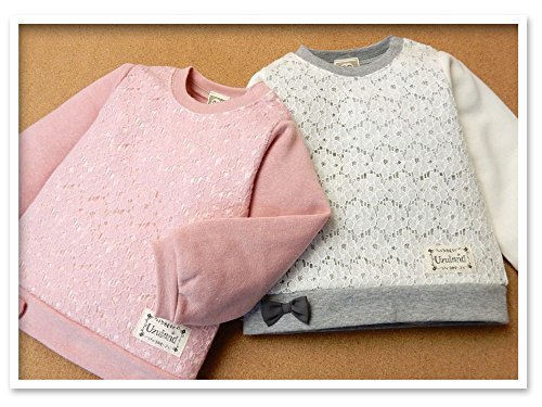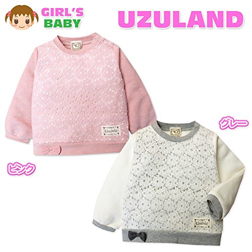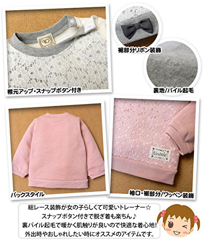 (ピンク/90cm)ベビー服 女の子 トレーナー 長袖 UZULAND パイル起毛 レース リボン装飾 スナップボタン ワッペン 女児 ベビー