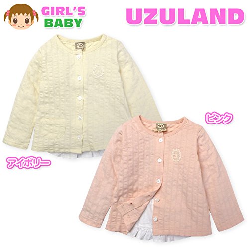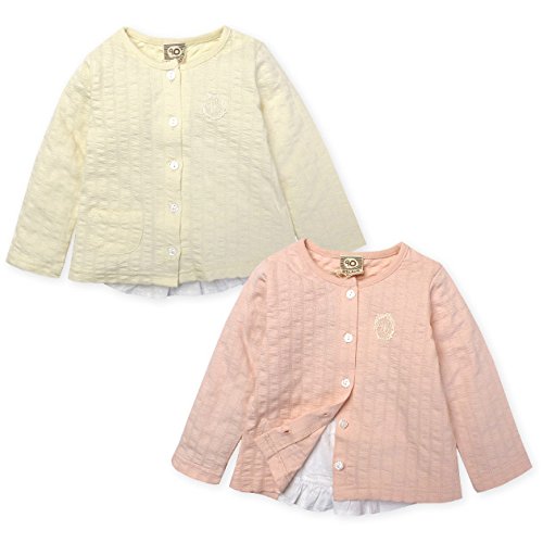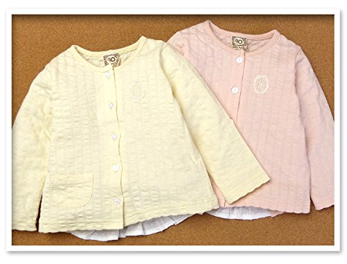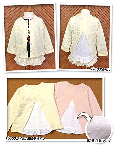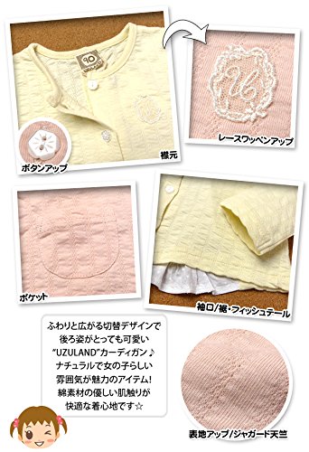 ベビー服 女の子 カーディガン 長袖 バック切替 フィッシュテール レースワッペン (2.ピンク/95cm)