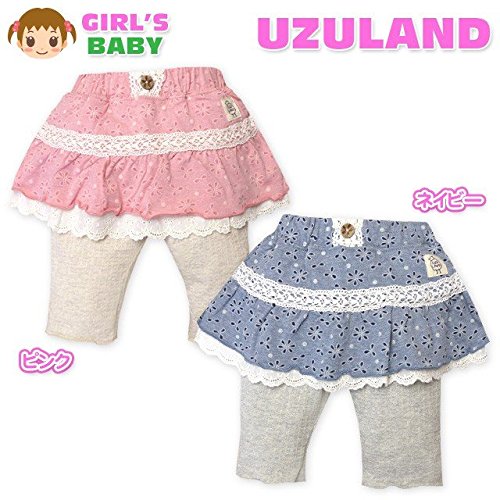 (ピンク/95cm) ベビー服 女の子 スカッツ スカート スパッツ ボトム UZULAND オパールプリント レース ウエストゴム 女児 ベビー
